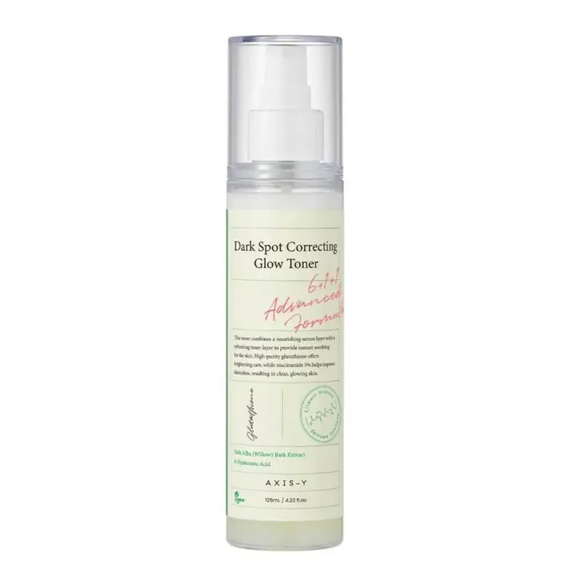 AXIS-Y Dark Spot Correcting Glow Toner (125 ml) is a daily toner and facial mist designed to reset your skin after cleansing while delivering hydration and brightening benefits. Its unique dual-layer formula combines moisture with potent actives — including 98 % glutathione, 5 % niacinamide (vitamin B3), and a water-soluble vitamin C derivative — to help reduce melanin production, improve overall tone, and support visible radiance from the first layer of skincare.