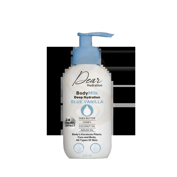 Dear Blue Vanilla Body Milk deeply moisturizes the skin with a light, fast-absorbing texture and a soft vanilla scent. Leaves skin smooth, nourished, and beautifully scented all day.