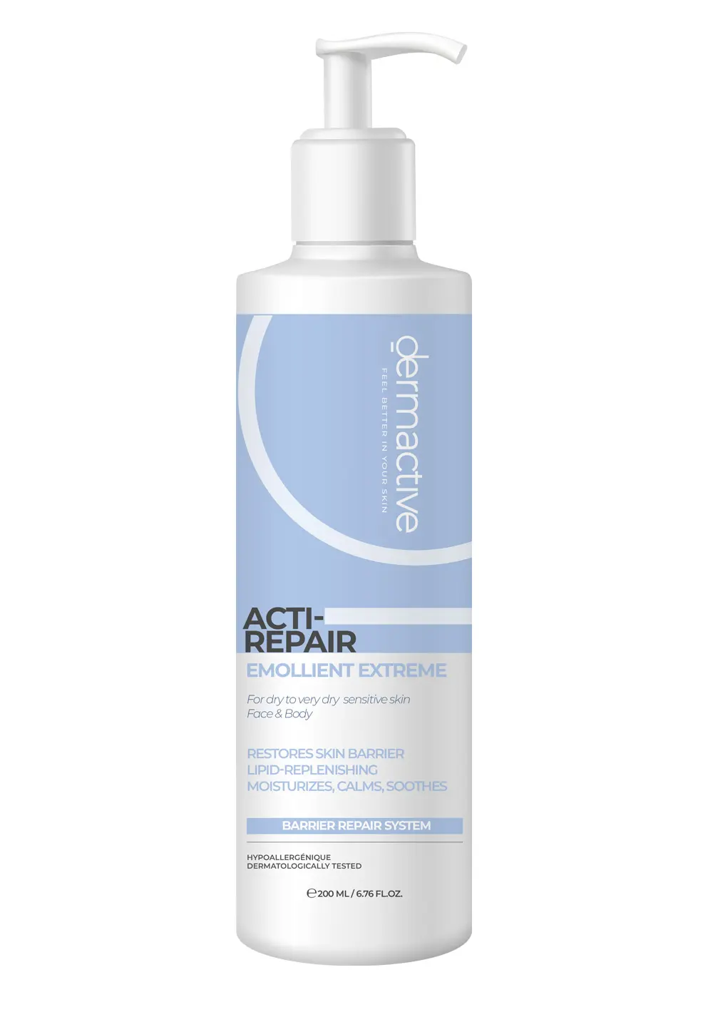 Dermactive Acti-Repair Emollient Extreme is an intensive, non-greasy restorative lotion that deeply hydrates and soothes dry, sensitive skin while helping to rebuild the skin’s natural barrier, suitable for both face and body.