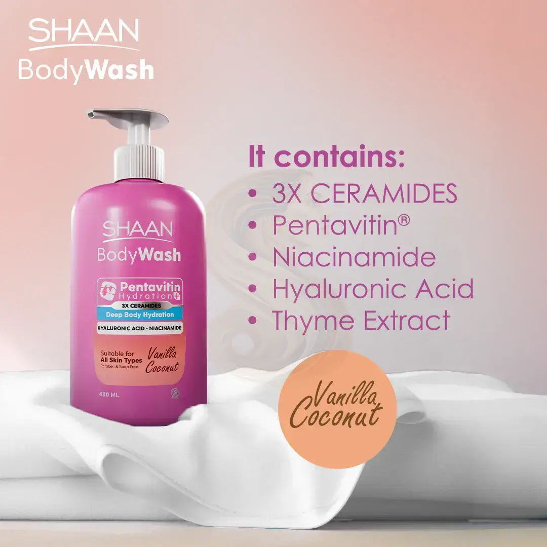Shaan Vanilla Coconut Body Wash is a gentle, creamy body cleanser with a delicious vanilla and coconut scent. It cleanses deeply while leaving your skin feeling soft, refreshed, and lightly fragranced—perfect for daily showers.